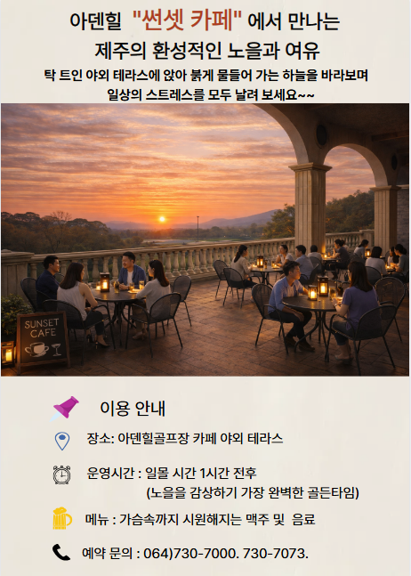 일몰전후 1시간씩 썬셋카페운영을 할 예정이오니 많은 관심부탁드립니다.